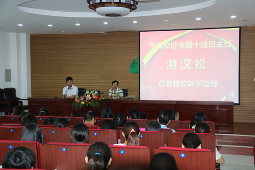 在培训中,游汉松老师用形象生动的语言,自己切身的体会讲解了先进的班主任工作理念,全校教师认真聆听了游老师的讲座,感受颇深。培训结束后,全体班主任又继续和游汉松老师进行了面对面的交流、探讨,向游汉松老师提出了许多自己工作中的问题,游老师都耐心的一一解答。