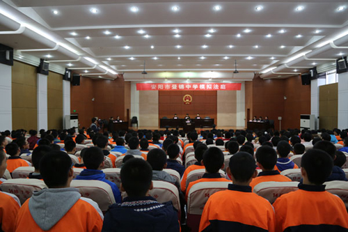 为切实增强学校学生的法律意识和责任意识,教育学生懂法、守法、知法、用法,学会用法律规范自己的行为,用法律保护自己的合法权益。在国家宪法日来临之际,安阳市昼锦中学于2015年12月3日下午在安阳市文峰区法院开展了“模拟法庭”活动,全体八年级学生参与了活动。
