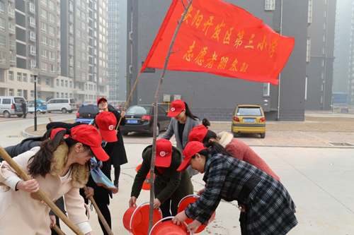 春回人间,万物复苏。为迎接“3.5学雷锋活动日”及一年一度的植树节,高新区第三小学结对帮扶小组的志愿者积极参加了学校组织的“绿化环境,美化家园”活动。