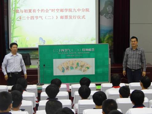 九中作为时空邮学院分院,《二十四节气(二)》邮票发行仪式在该校举行,丰富了校园文化生活,创新学生学习传统文化教育方式,提高学生学习传统文化的兴趣。开拓了视野、扩大知识面,更加提高了自身修养,继承和弘扬我国的传统文化,同时也是新一代的学生们不可推卸的责任与义务。