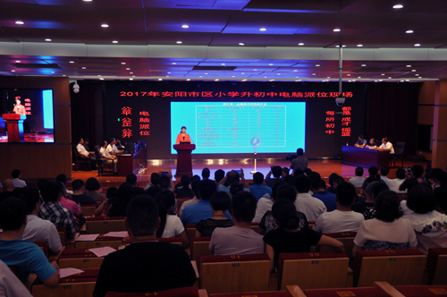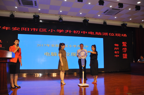 8月6日上午,我市市区2017年小学升初中电脑派位工作在正一中学进行。今年市区参加电脑派位人数是12966人,其中北片4117人,南片5354人,西片3495人,小学升初中仍然实行电脑派位。市政府副秘书长赵世辉,市人大科教文卫工委主任丁琦,市政协科教文卫体委主任刘静,市教育局党委书记、局长王爱宏,市教育局副局长朱中林,市教育局纪工委书记李长友,市公安局、市教育局、公证处等相关负责同志出席了电脑派位现场。