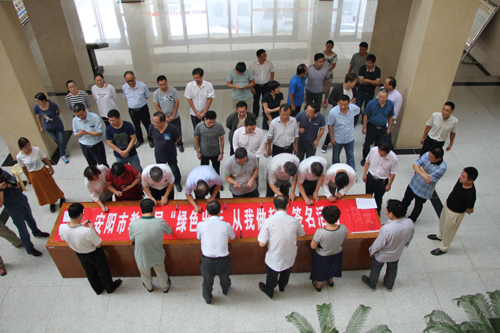 市教育局认真学习文明办通知精神,结合局机关实际,制定《关于开展“绿色出行周”活动的通知》并通过OA办公平台下发,在公开栏张贴组织学习。通过LED屏进行绿色出行宣传。9月12日上午,又组织全体人员在机关一楼大厅开展安阳市教育局“绿色出行 从我做起”签名活动,进一步强化大家的绿色出行意识。大家能够按照相关要求积极行动,上下班采用骑自行车、步行、乘坐公交等方式减少私家车的出行。