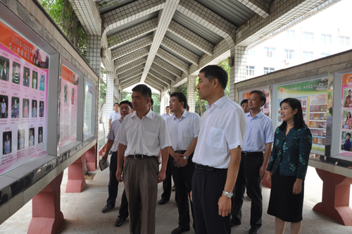 在安阳市第五中学,李公乐一行参观了校园,仔细听取学校情况介绍,详细询问学校的办学规模、教育教学、校园文化建设等方面的情况,并在校园内接见了“安阳最美教师”代表,与他们亲切交谈,送上节日的鲜花和祝福。